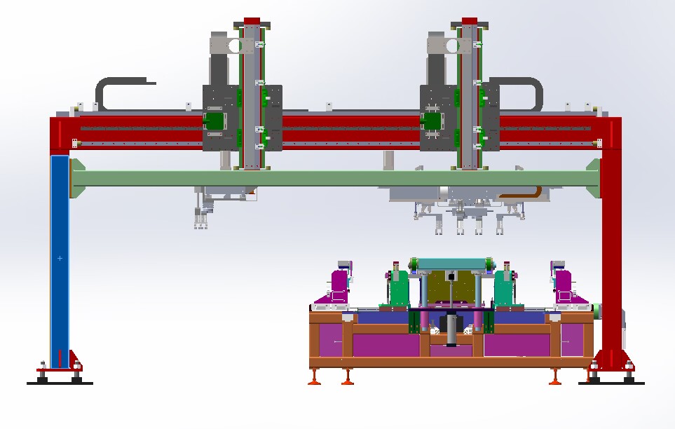 • 全自動(dòng)裝框一體機(jī)是角碼柳接式鋁合金矩形組裝的專用設(shè)備。由氣缸、直線導(dǎo)軌及鋼結(jié)構(gòu)組裝而成,可以實(shí)現(xiàn)組件層壓完畢以后,組件的鋁合金邊框擠壓定位。